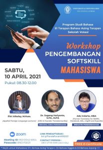 Dengan tujuan memfasilitasi mahasiswa untuk memperoleh ilmu di bidang penerjemahan, Prodi Bahasa Asing Terapan UNDIP bekerja sama dengan Himpunan Penerjemah Indonesia (HPI) dengan menyelenggarakan workshop