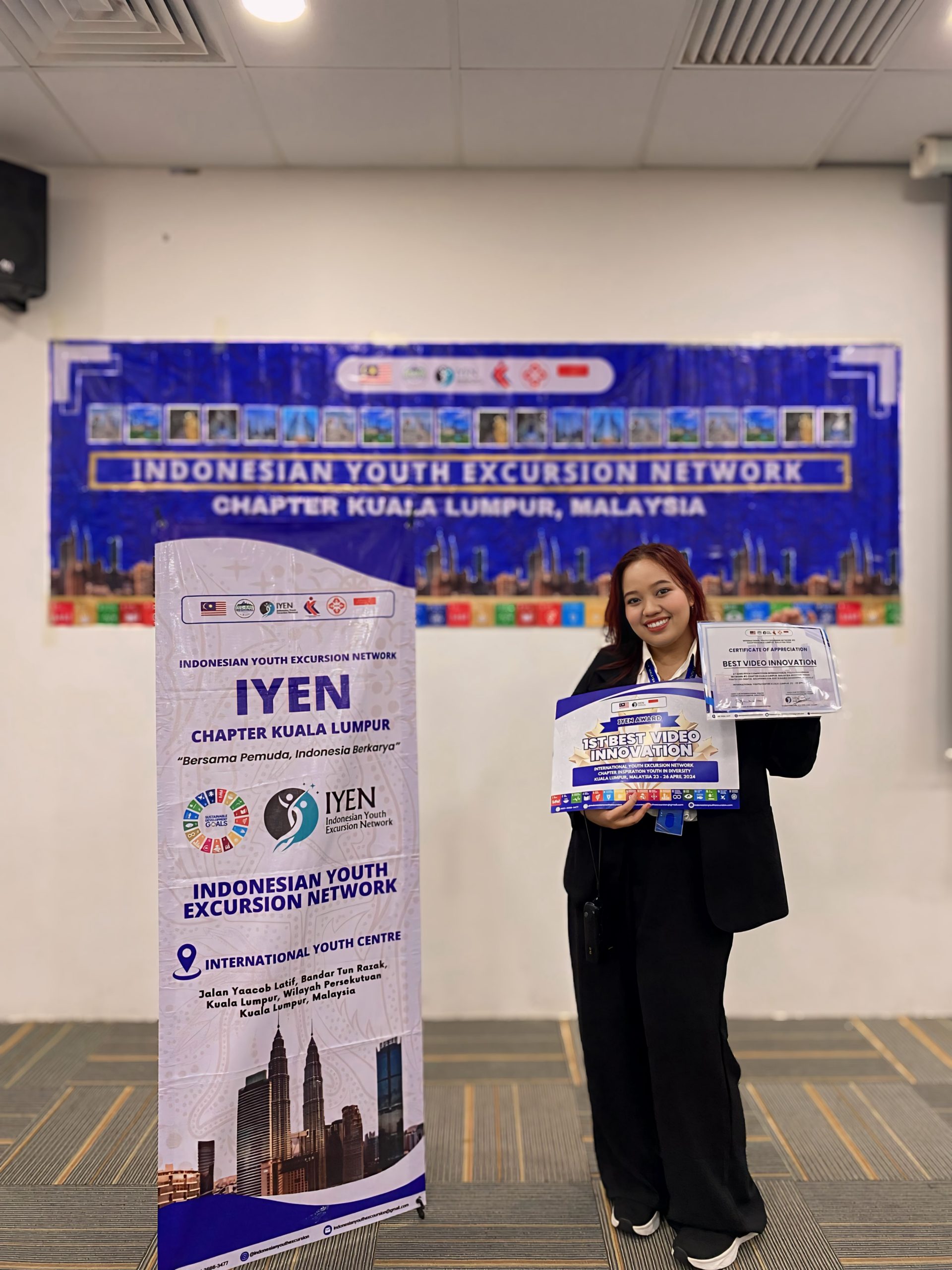 Being a final-year student does not necessarily mean you should stay away from any competition. This is at least true for the final-year student of Applied Foreign Language, Siti Anjani. The student, whose nickname is Anya, won the First Best Video Innovation award in the Indonesian Youth Excursion Network Chapter Kuala Lumpur, Malaysia held in April.